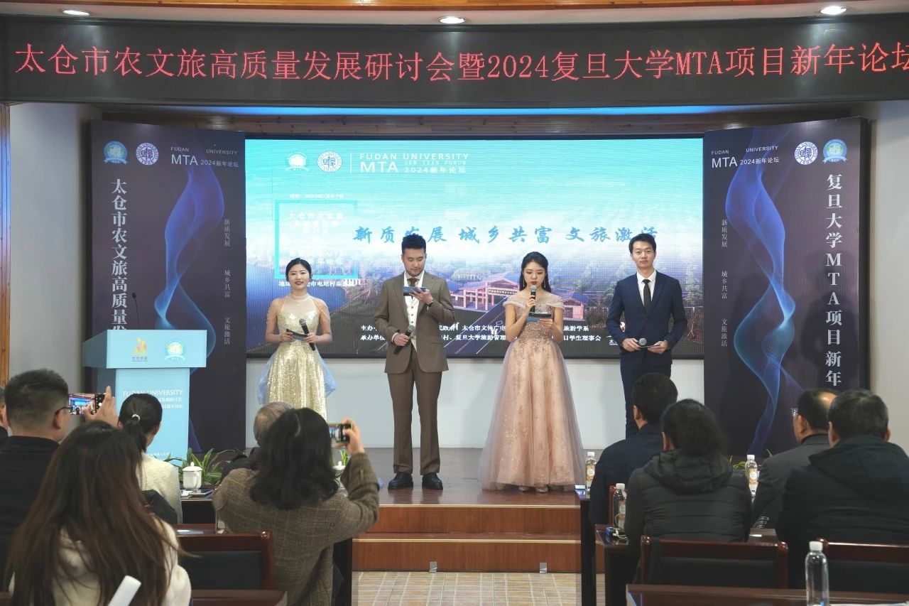2024年1月6日至7日,复旦大学MTA2024新年论坛在江苏省太仓市城厢镇电站村举行。此次论坛由太仓市文体广电和旅游局与复旦大学MTA项目联合举办,复旦MTA学生理事会承办。太仓市政府、城厢镇、电站村领导,复旦大学旅游学系领导和教师代表,行业导师、演讲嘉宾,以及历届复旦MTA学员齐聚太仓、共襄盛会。本次新年论坛围绕“新质发展 城乡共赴 文旅激活”主题展开了热烈的讨论和深入的交流。
