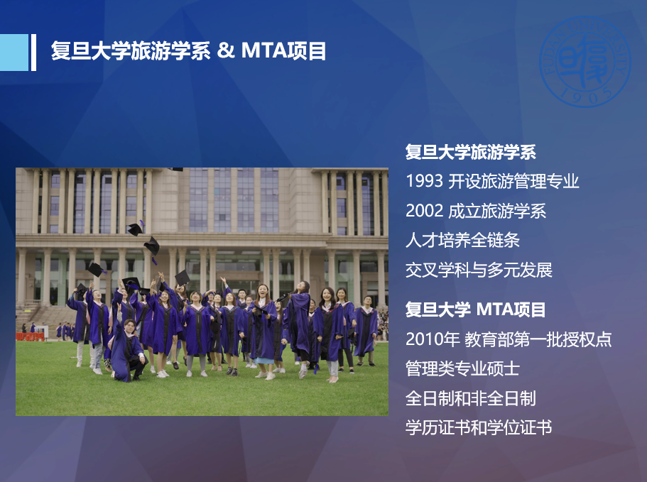 在问答环节结束后,孙云龙老师向大家做了总结和个人寄语。孙老师说旅游业是朝阳产业也是支柱产业,上海市政府专门出台了相应支持发展旅游业的文件和相关的布局规划,足见旅游业的重要程度和地位。虽然疫情期间旅游业遭受了冲击,也引爆了很多问题,引发了一轮行业的重新洗牌,但换个角度,作为从业者的我们,要以此为契机,提升自身的基本功,做好后疫情时期的发展规划。总体而言,旅游业的发展关键还在于人才,我们MTA的项目主旨就在于培养出旅游业的精英和领军人才,希望我们MTA的学员都能怀揣人本主义的精神,将个人发展同社会发展、国家发展牢牢地结合在一起,不拘泥于个人的视角,具备较为广阔的视野和较高的格局,保持家国情怀,勇于担当,在必要时候学会将个人利益让位于集体利益和社会利益,做一名真正对社会、对国家有价值的新时代创新型人才。同时也欢迎各领域有志于在旅游业发展的同学报考MTA,后续也可多关注复旦大学MTA公众号的相关信息。