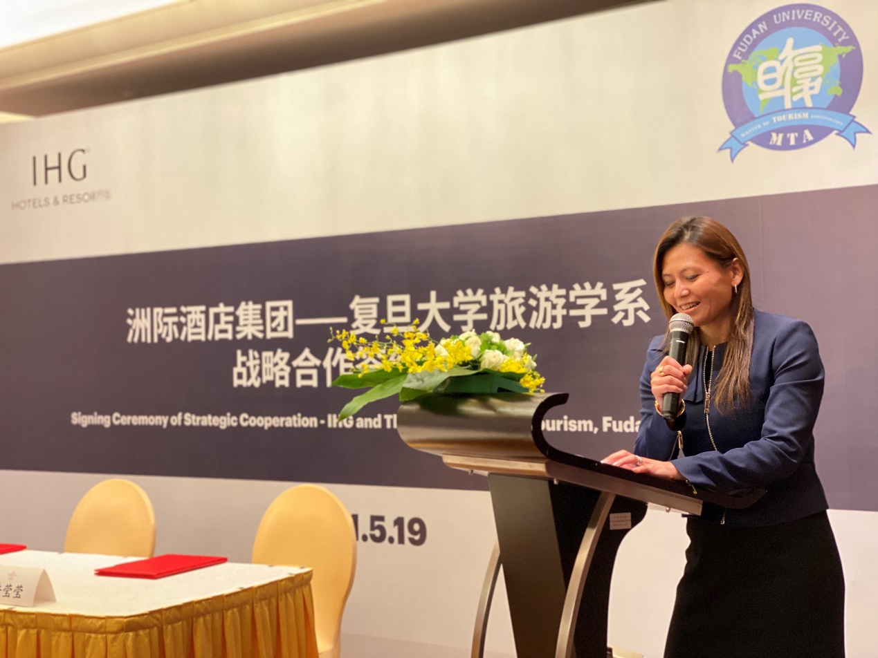 洲际酒店集团大中华区人力资源副总裁许莹莹女士表示与复旦大学旅游学系的战略合作将加强洲际酒店集团的人才培养,有助于洲际酒店集团整体人才计划的发展。